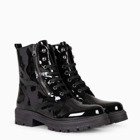 MILITAR – Botas militares de mujer NEGRO CHAROL