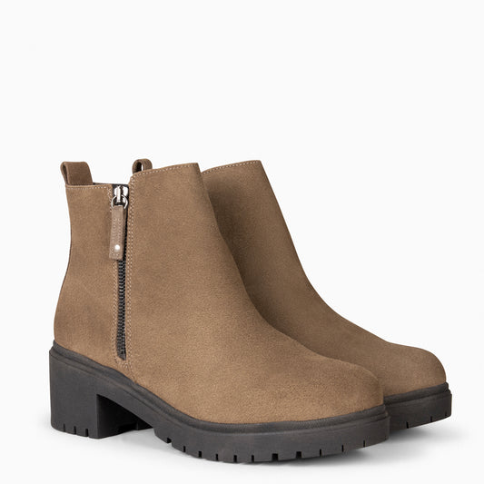 NIXIE – botines de tacón bajo para mujer TAUPE