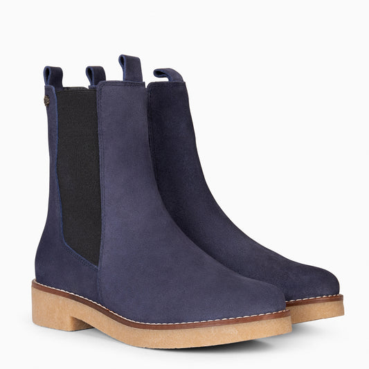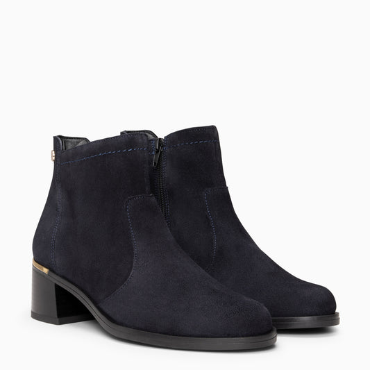 PRAGA – Botines con tacón de piel de seraje MARINO