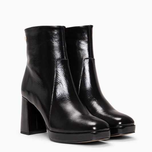 PRAGA – Botines con tacón de piel de seraje NEGRO