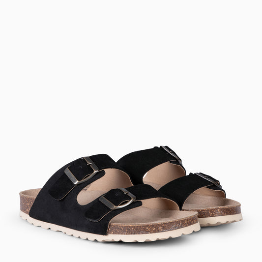 BALI - Sandalia plana con doble hebilla BIO NEGRO