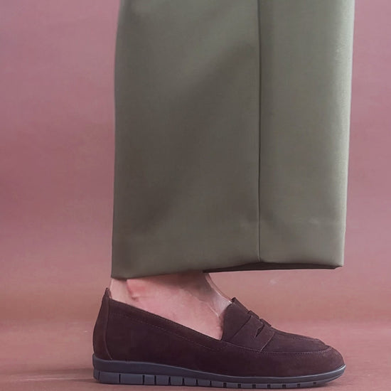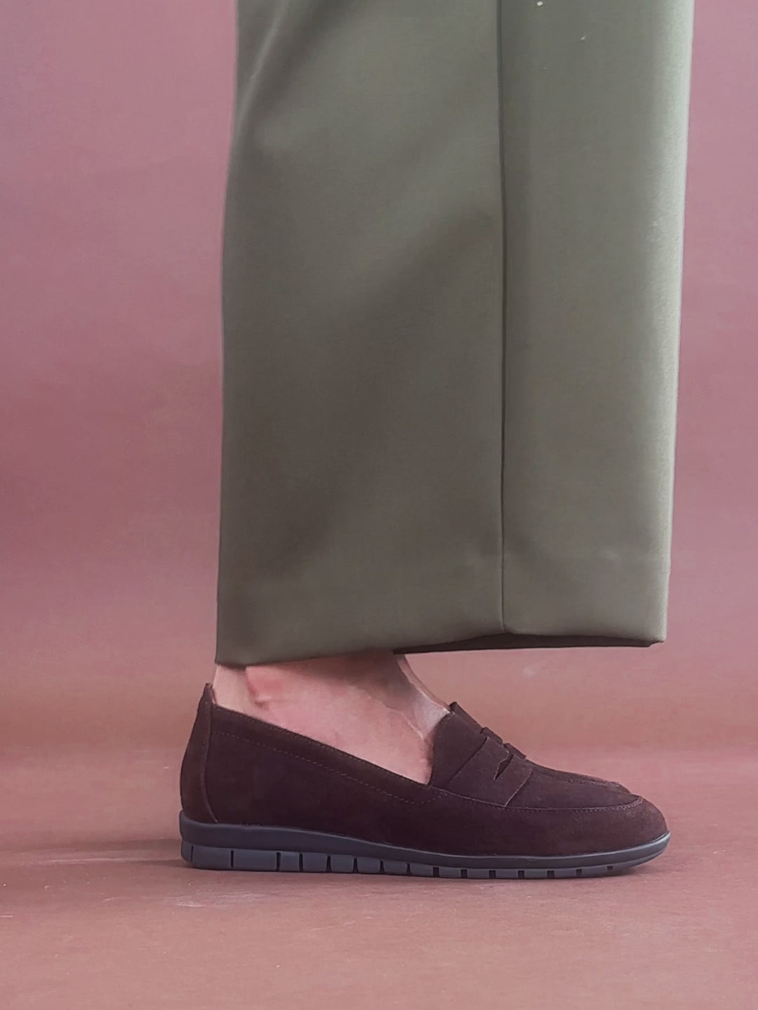 Estos Mocasines 360 con cuña fabricados en piel de serraje, ideales para llevar en los momentos en los que quieras estar más cómoda. La cuña interna mide 2,5 cm y su plataforma 1.5 cm. Cuentan con un adorno en antifaz en la zona del empeine que le dan un toque elegante y permiten utilizar este calzado para ir al trabajo o en momentos de ocio. El dibujo del piso está muy fraccionado en secciones para dividir el peso del cuerpo al caminar y reduce las posibles molestias musculares.