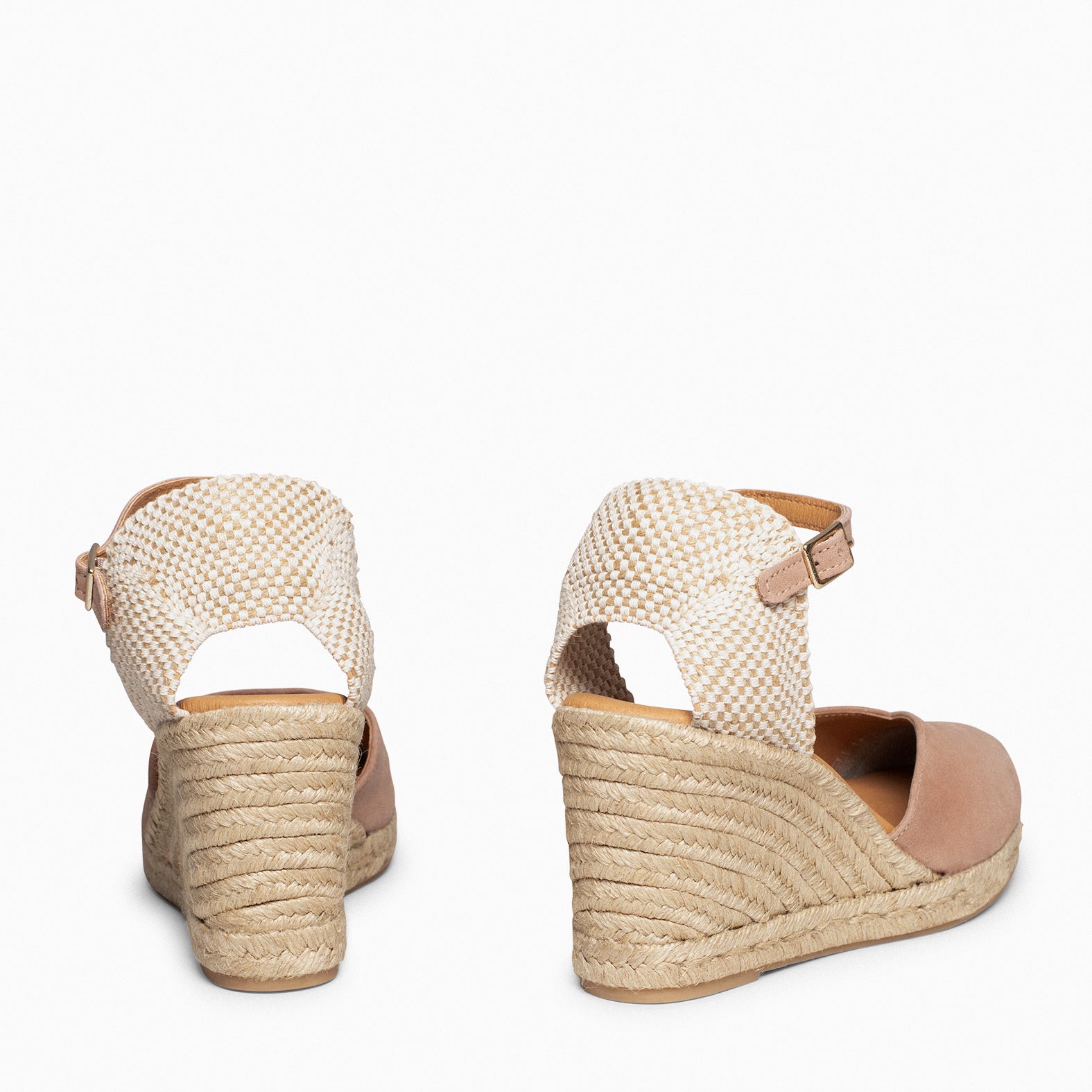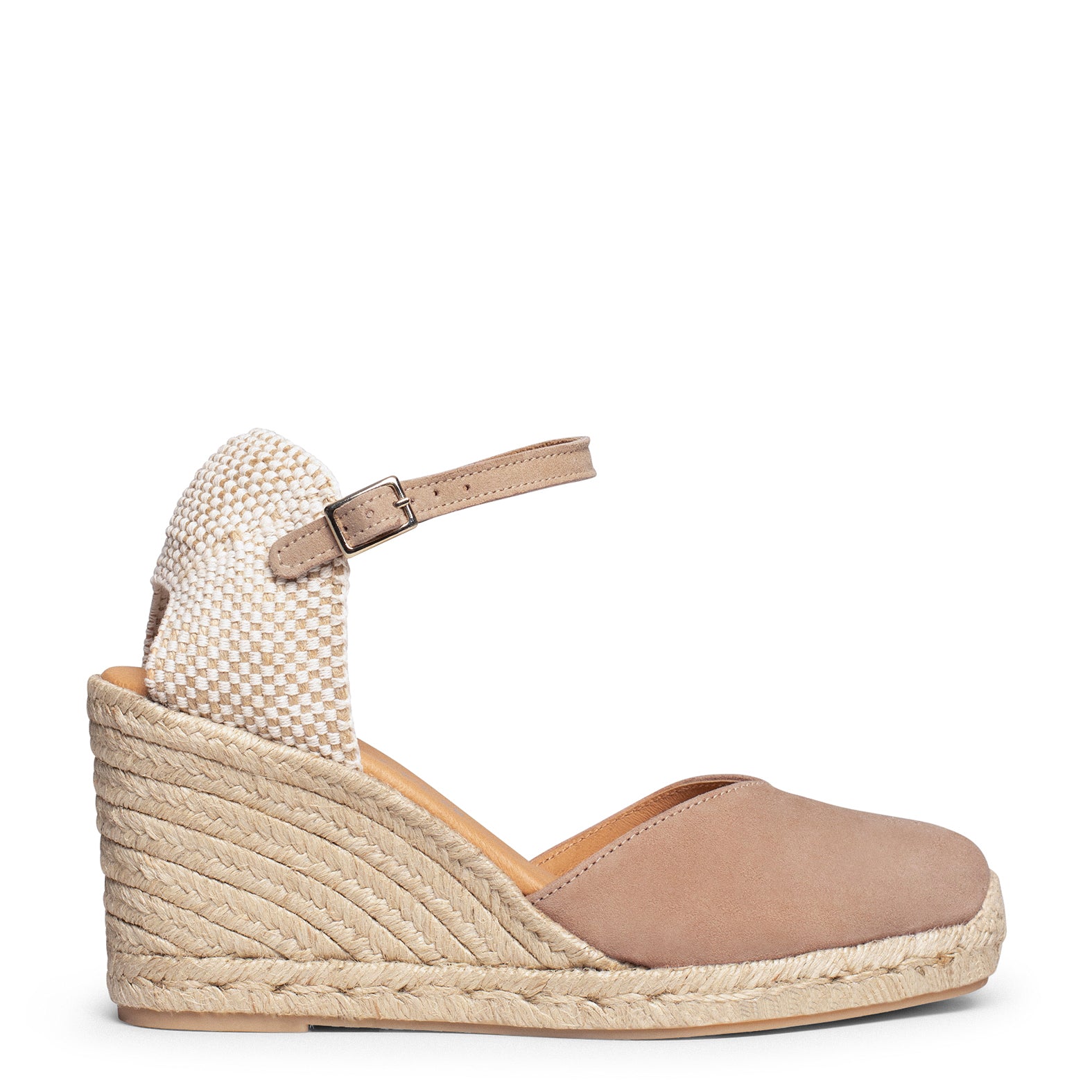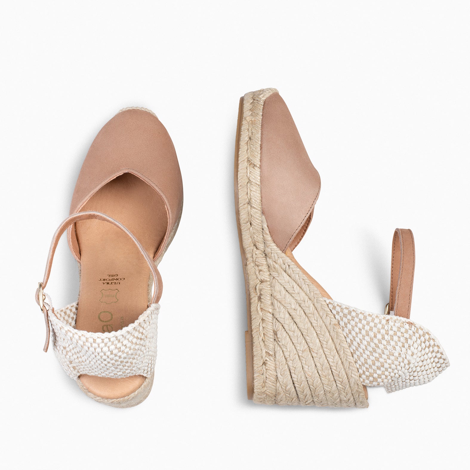 Esta cuña de esparto tiene un diseño con escote en V que estiliza el pie y la talonera abierta deja transpirar la piel. La pulsera del tobillo sujeta bien la pierna y evita el molesto chancleteo típico de este tipo de calzado.