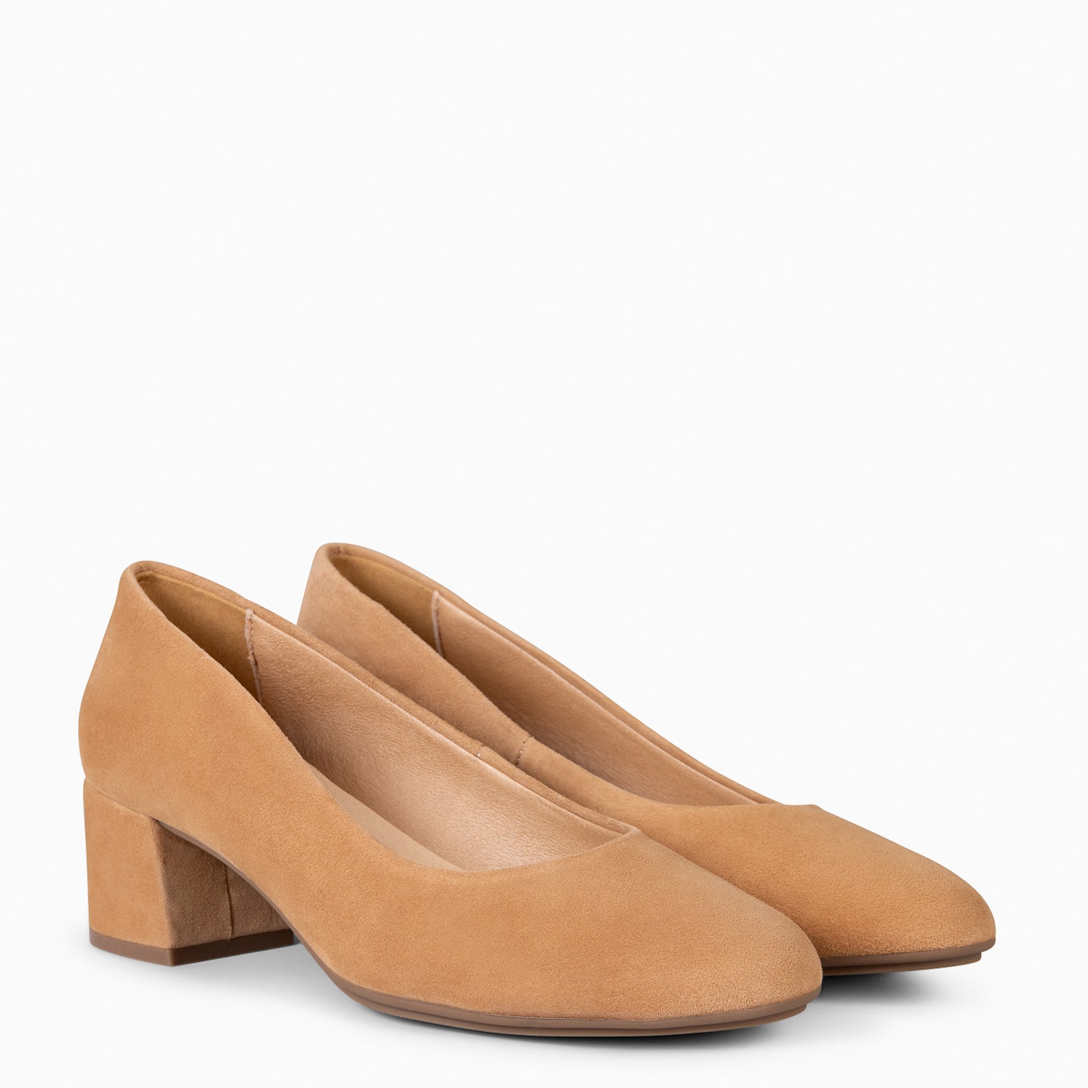 Zapatos de tacón bajo fabricado en piel de ante de máxima calidad. Cuentan con un tacón ancho y bajo con forma de trapecio que proporciona una gran superficie de apoyo. Esto, junto a la puntera redondeada y ancha, hacen de estos Urban Redondo el zapato más cómodo.