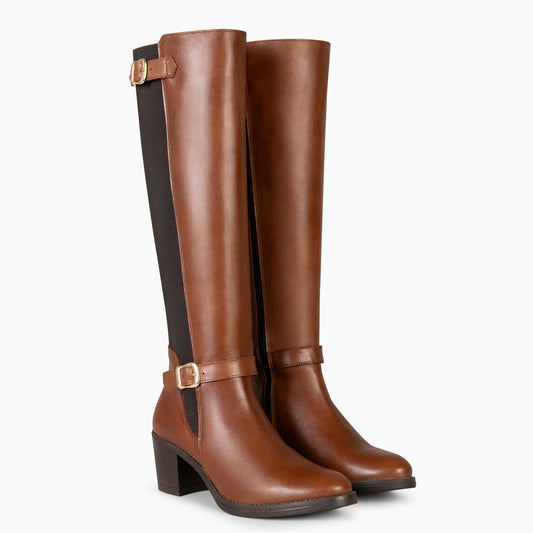 ARIANA XL – Botas de tacón y plataforma altas en piel MARRON
