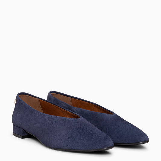 URBAN LACY – Bailarina con tacón bajo en piel de serraje MARINO