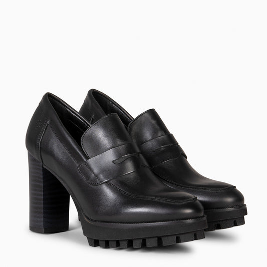 TREND – Mocasín con tacón y plataforma NEGRO