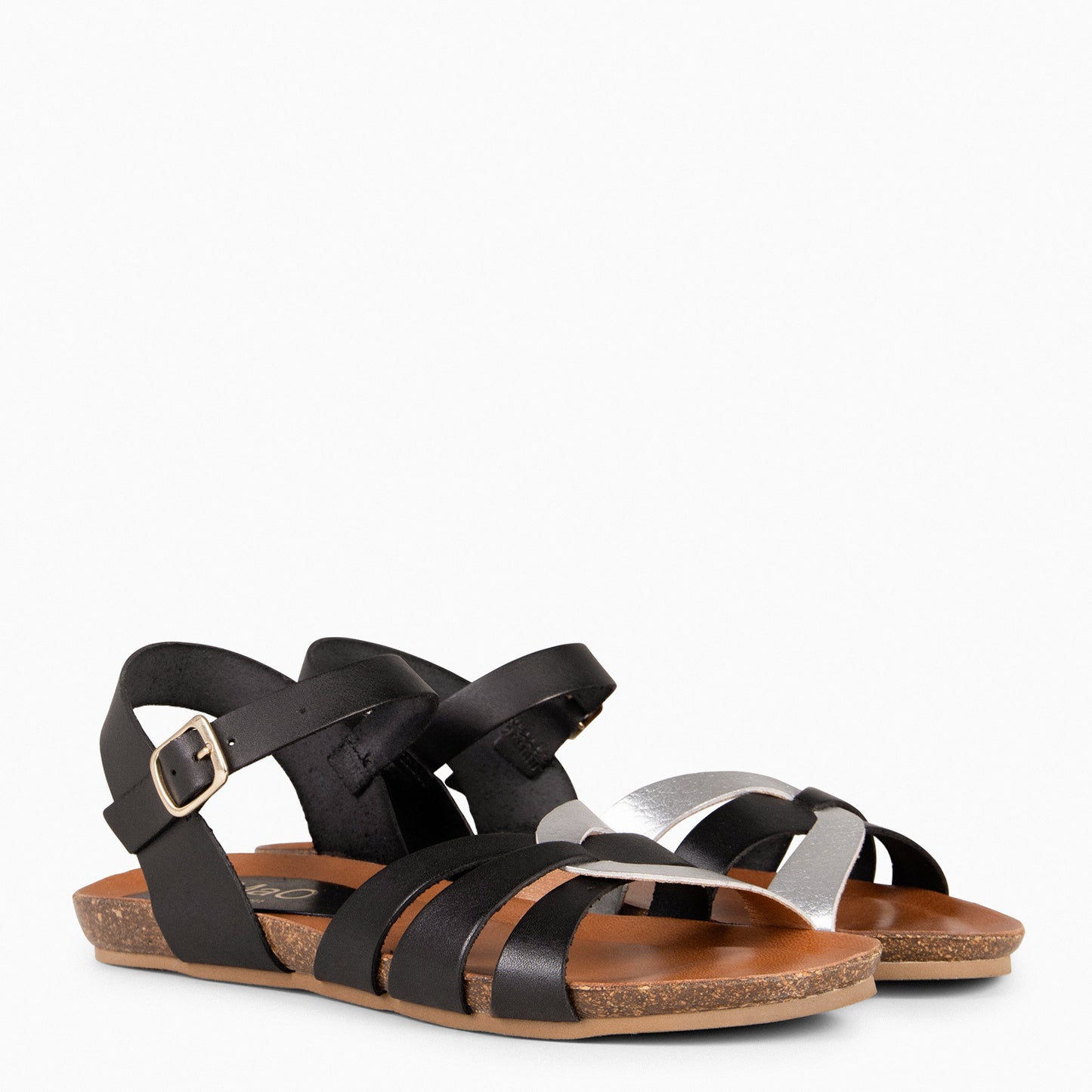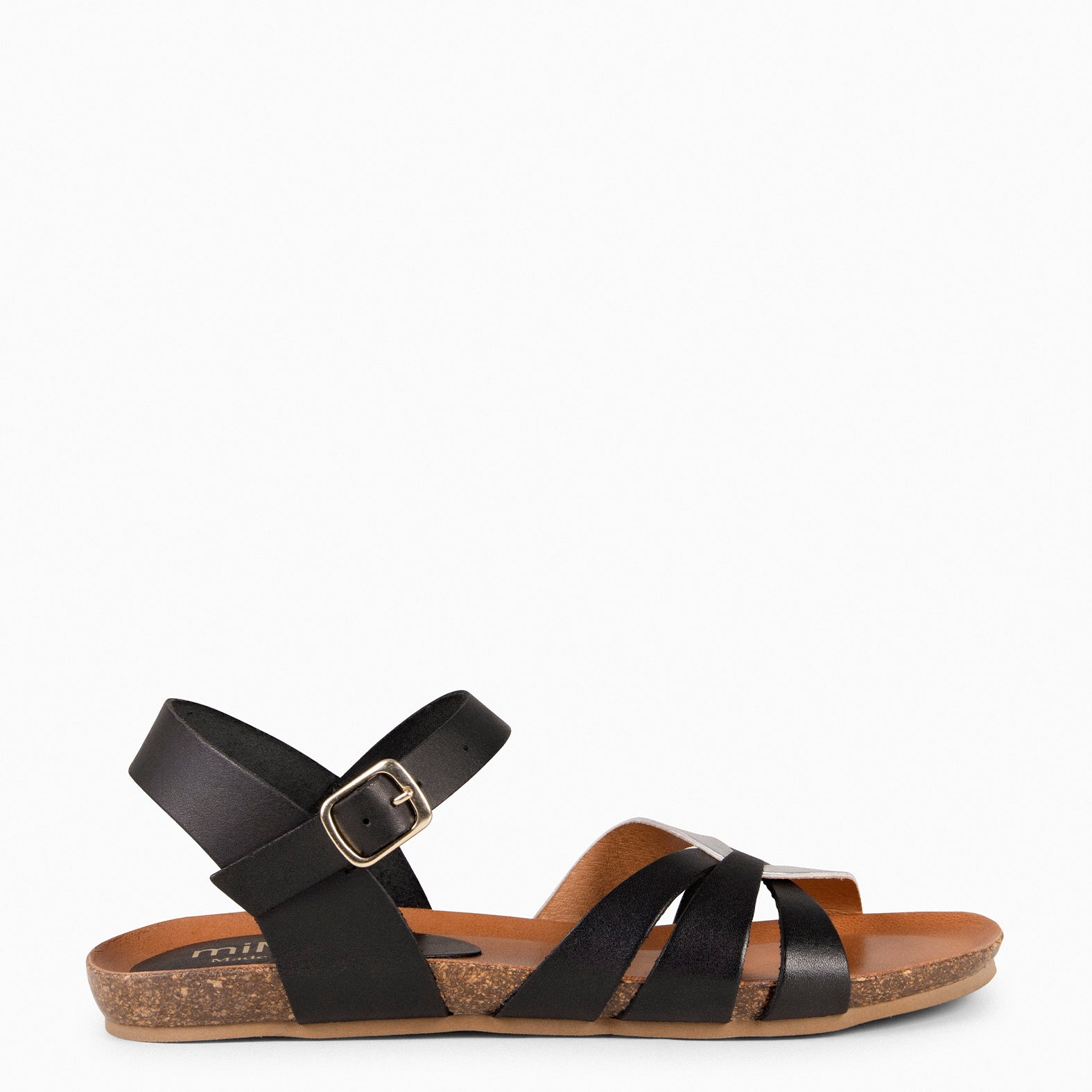 SALOMÉ - Sandales plates avec bracelet NOIR