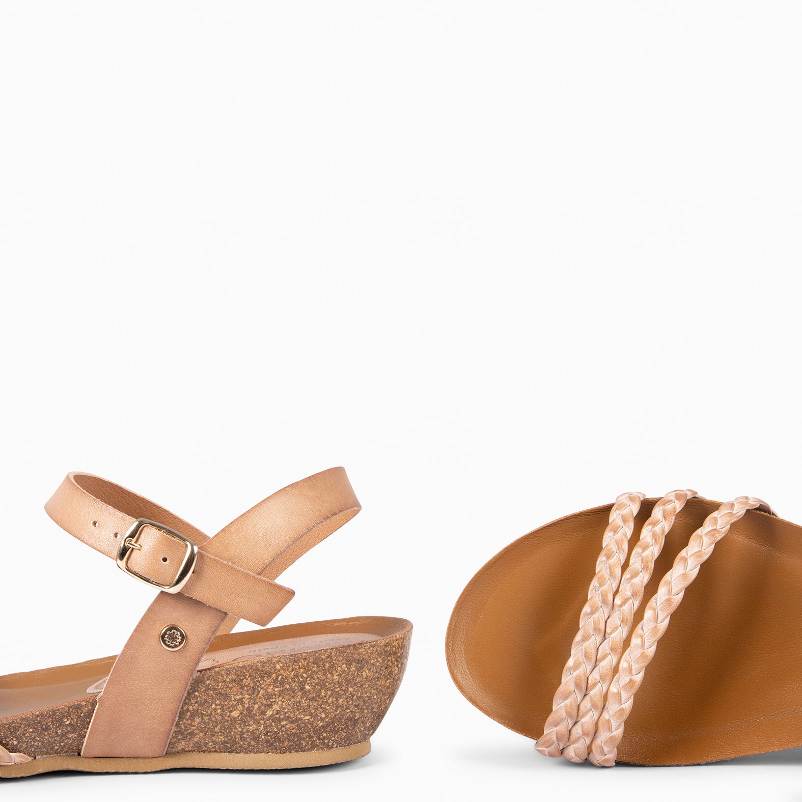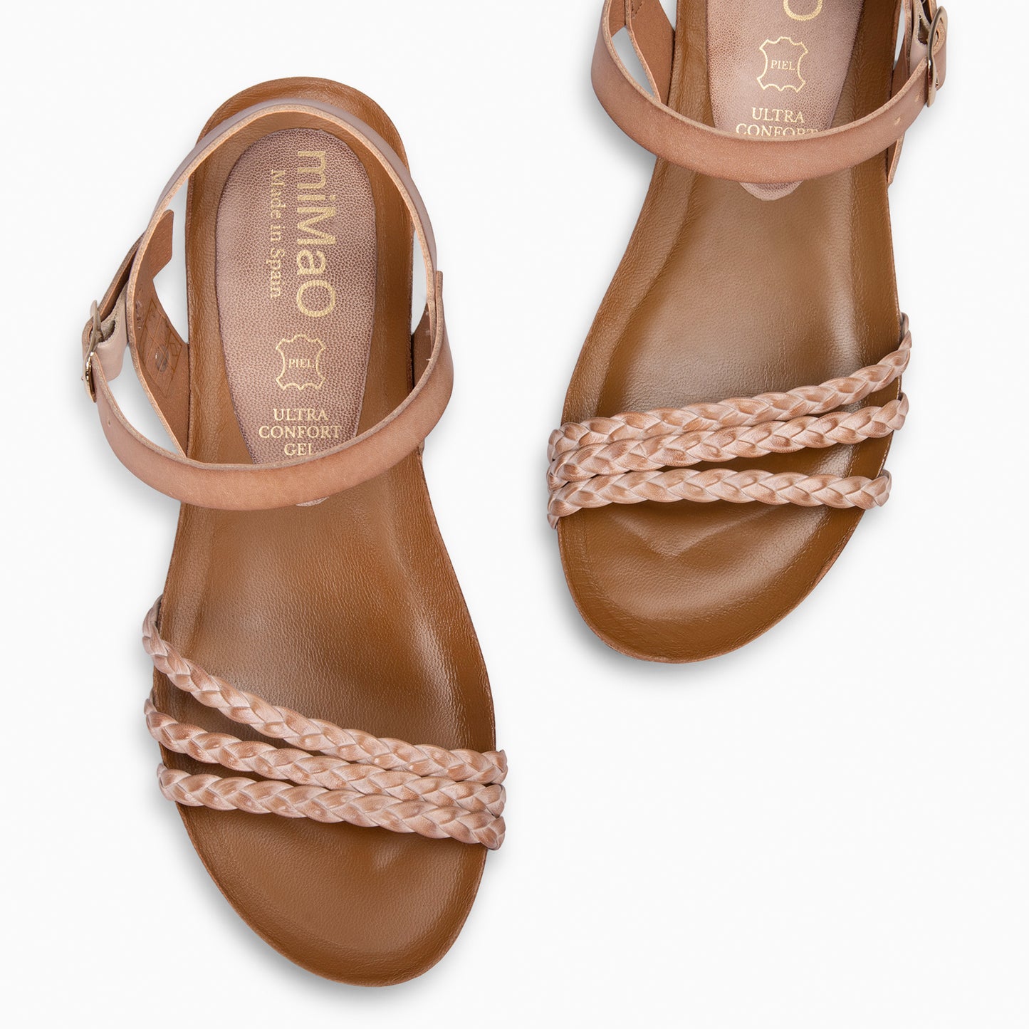 Nuestra sandalia bio CORFU está fabricada en piel de napa, cuenta con una altura de piso de 1.5 cm. Tiene una hebilla que hace que se ajuste al tobillo, para evitar el chancleteo.