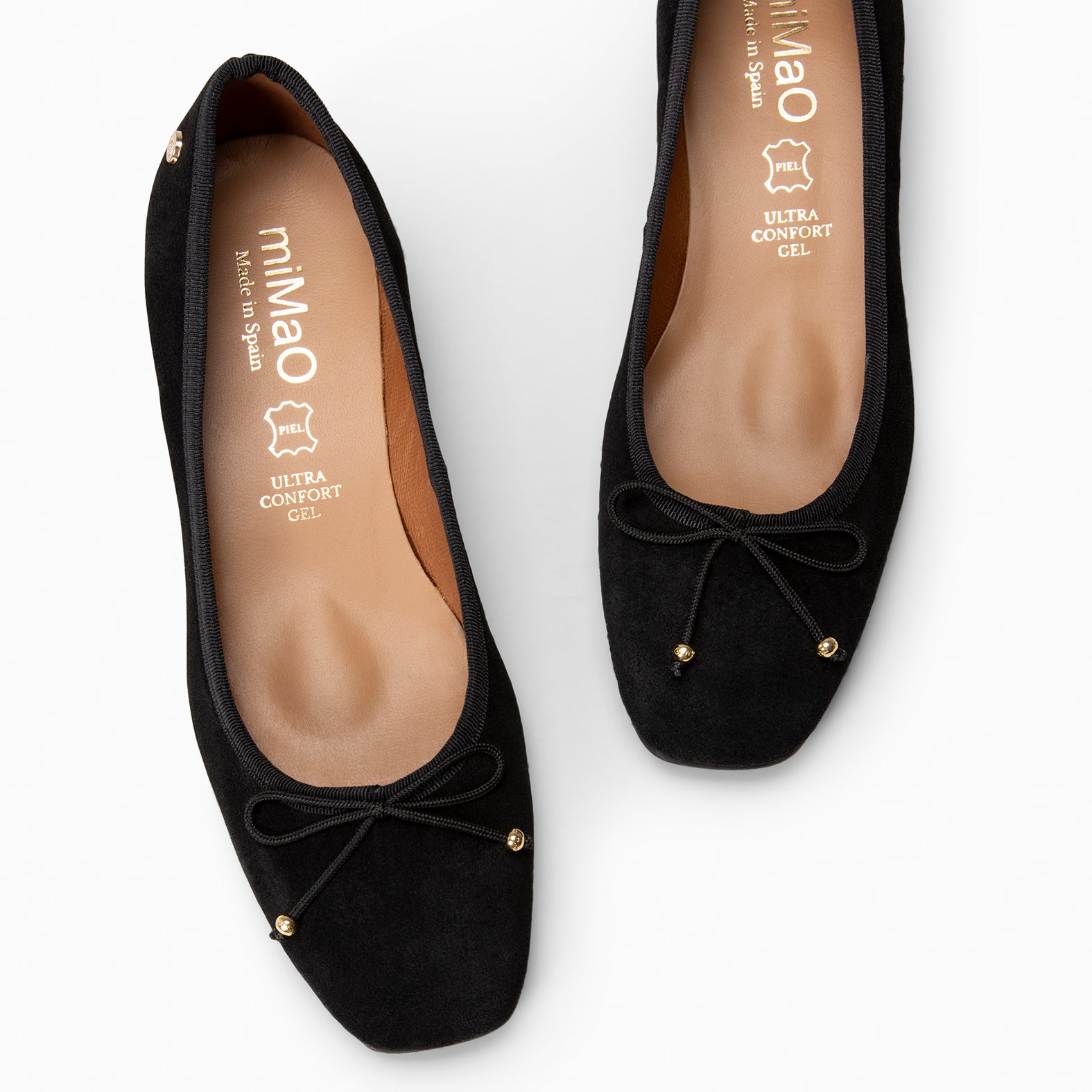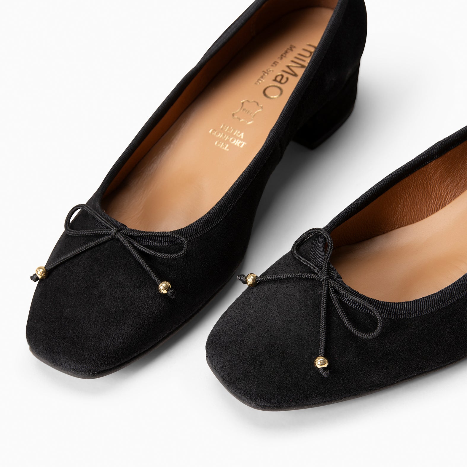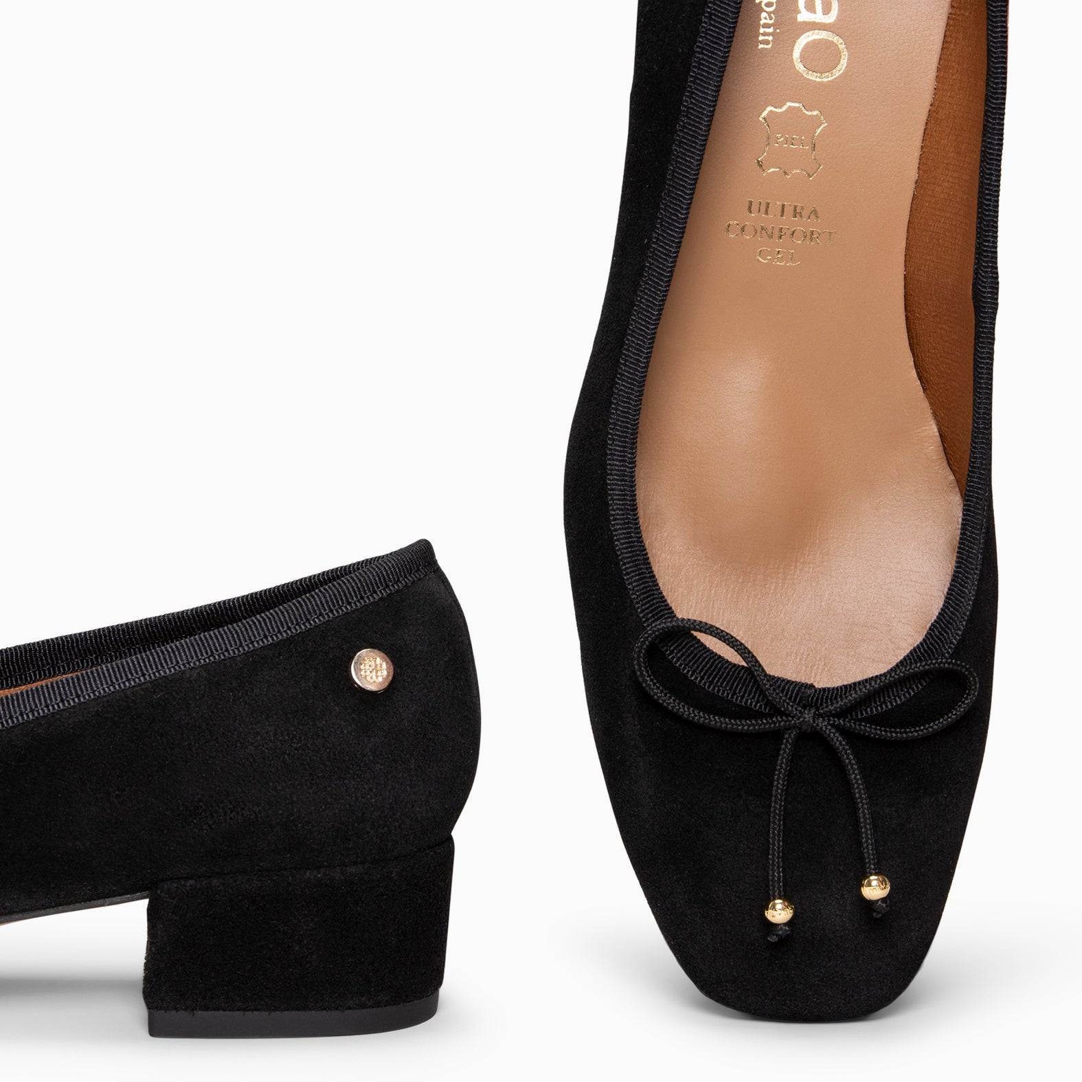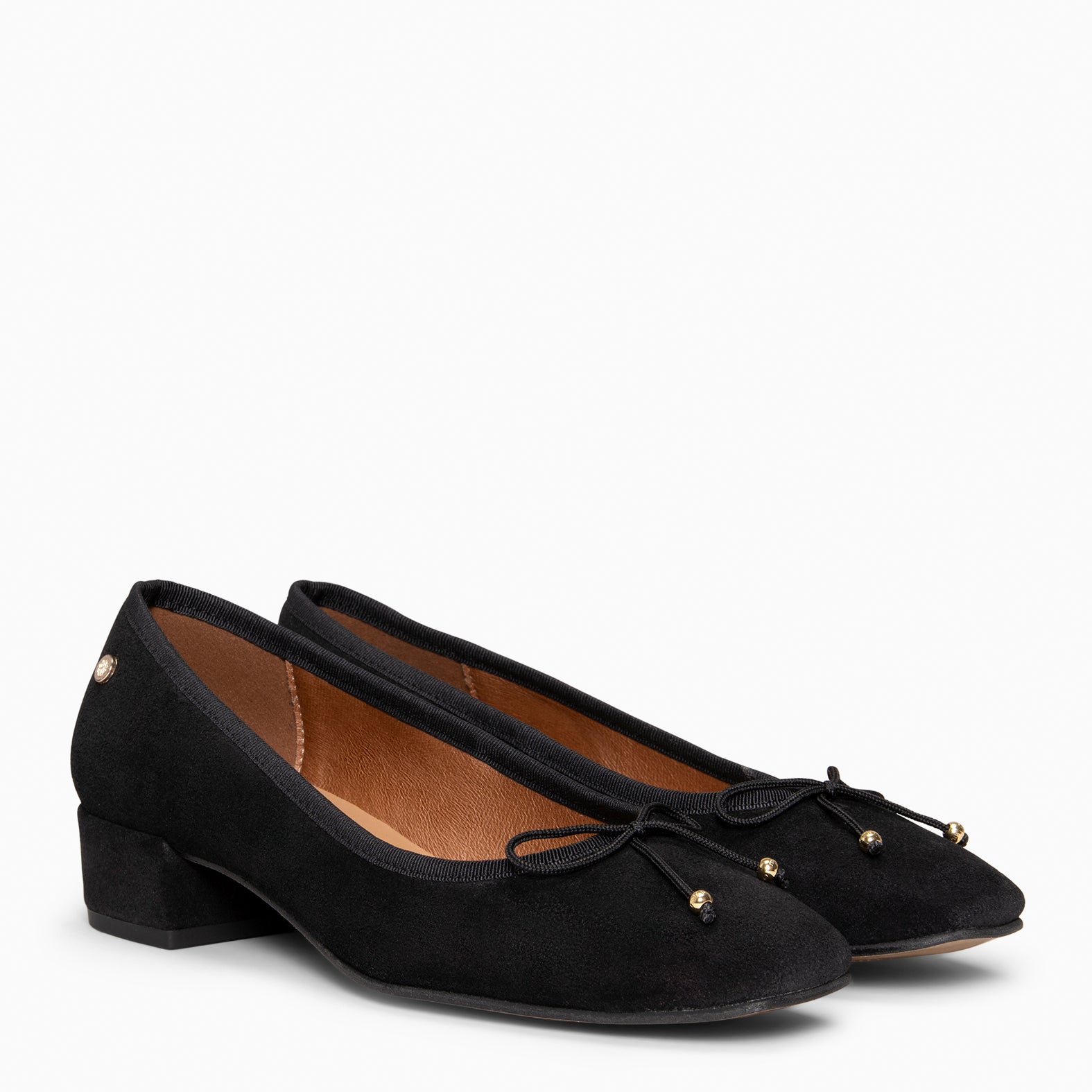 NINA – Bailarina de tacón bajo en piel de serraje NEGRO