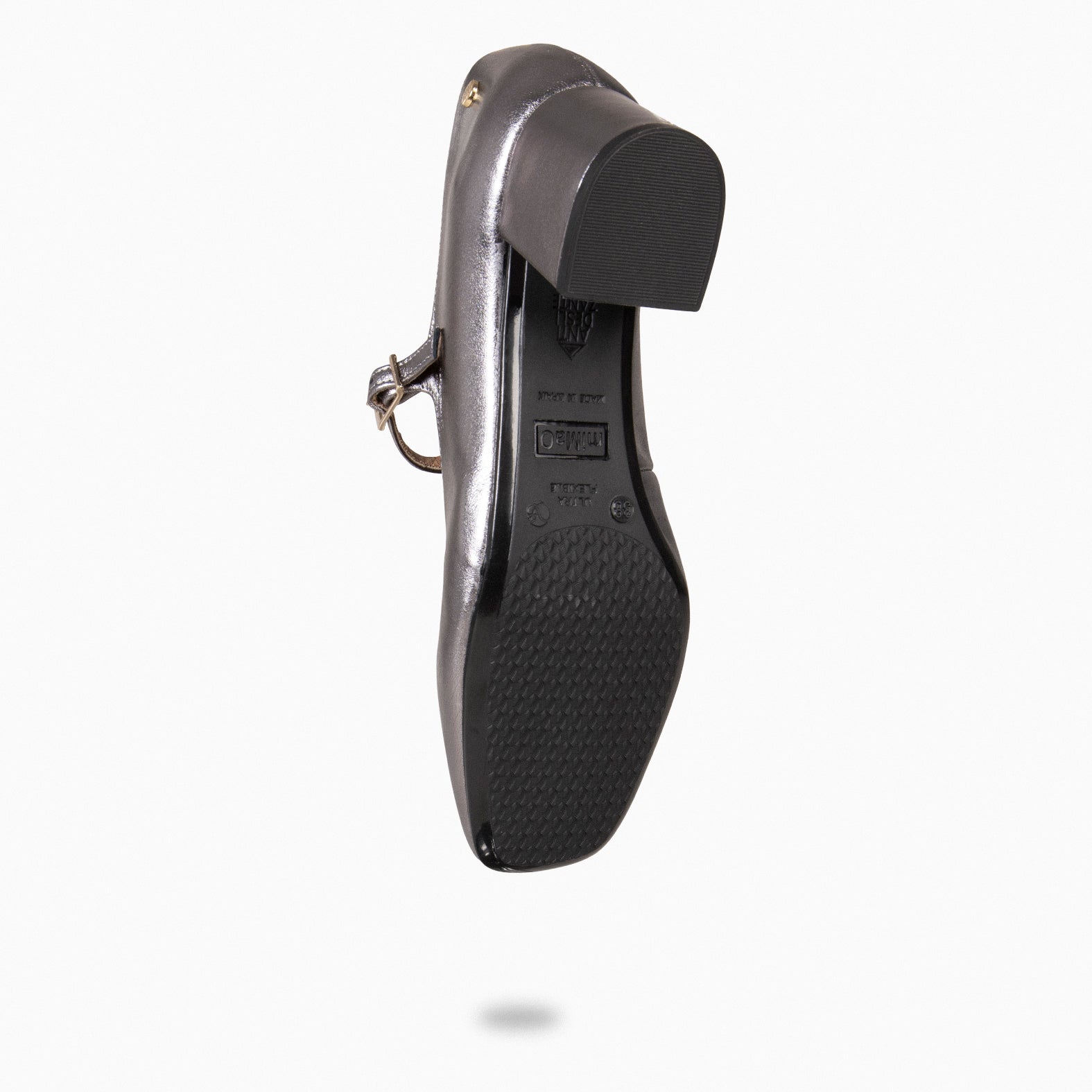 Este modelo es uno de los más elegantes gracias a su pulsera, su puntera cuadrada y su tacón ancho al tono. Estas Merceditas con tacón de piel de napa metalizada, se convertirán en unos imprescindibles en todos los fondos de armario. Tiene un tacón medio de 5 cm de atura y cuneta con un piso de 0.5 cm. Tiene una tacha personalizada con el logotipo de miMaO, en dorado.