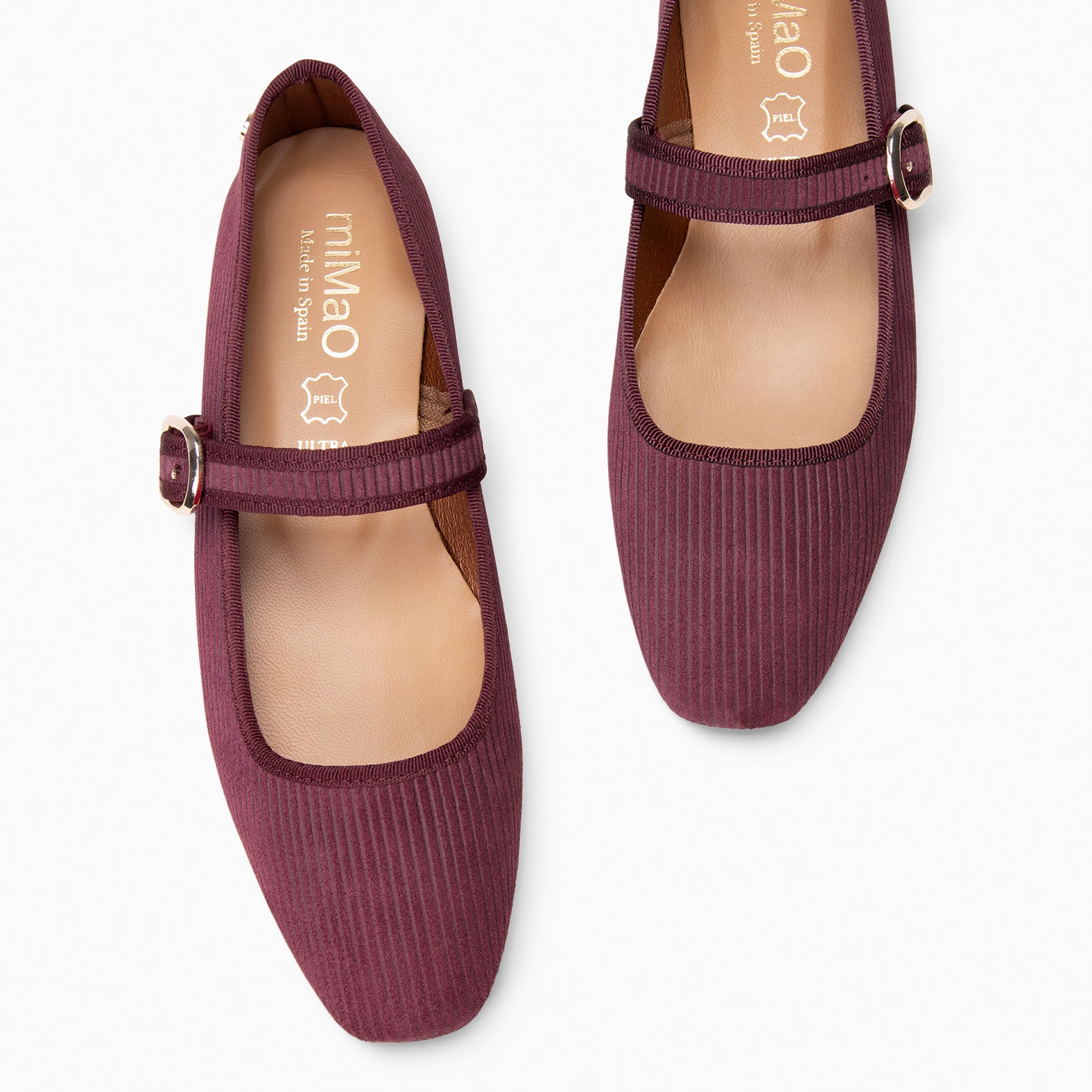 Esta Mercedita está fabricada en piel de serraje de pana, tiene una altura de tacón de x cm. Además, cuenta con una tira para poderla ajustarla a tú medida, también cuenta con una hebilla que tiene elástico para mejor puesta.