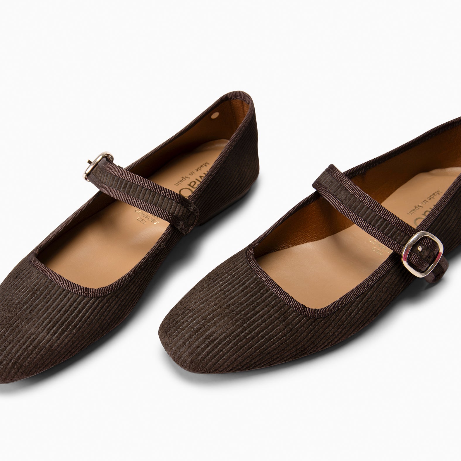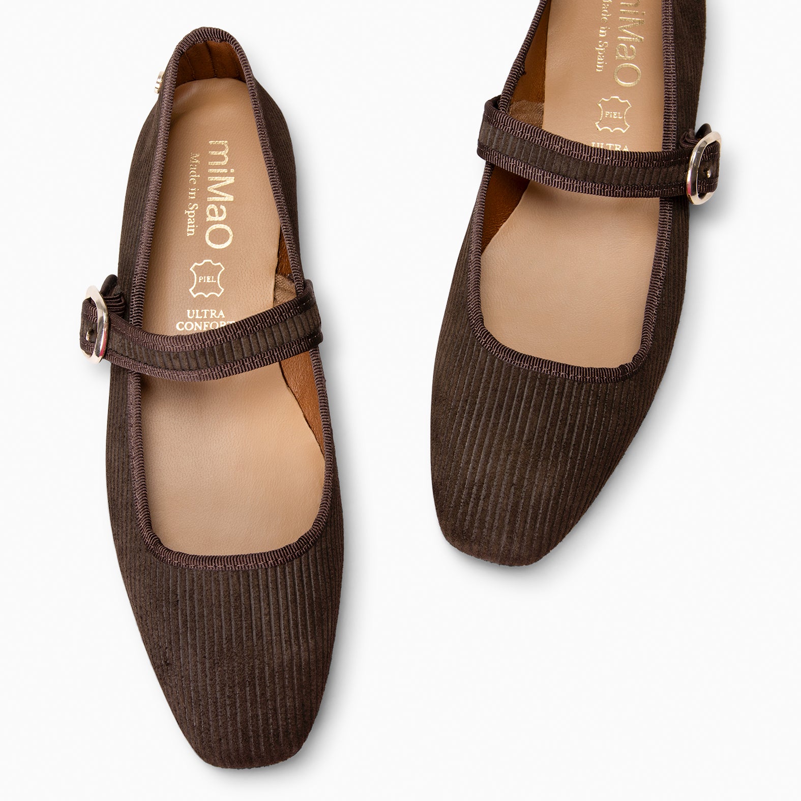 Esta Mercedita está fabricada en piel de serraje de pana, tiene una altura de tacón de 1 cm. Además, cuenta con una tira para poderla ajustarla a tú medida, también cuenta con una hebilla que tiene elástico para mejor puesta.
