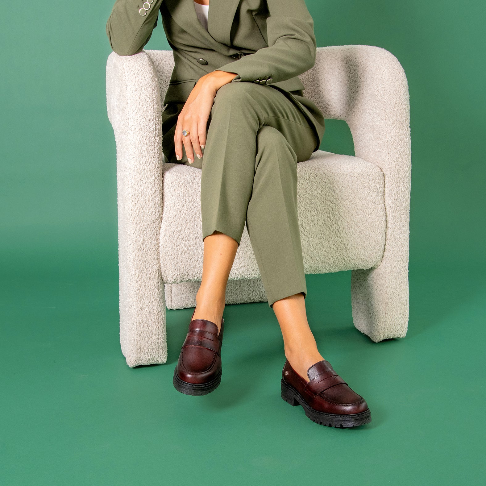 TRAVIS - Mocasin de piel de napa cepillada BURDEOS
