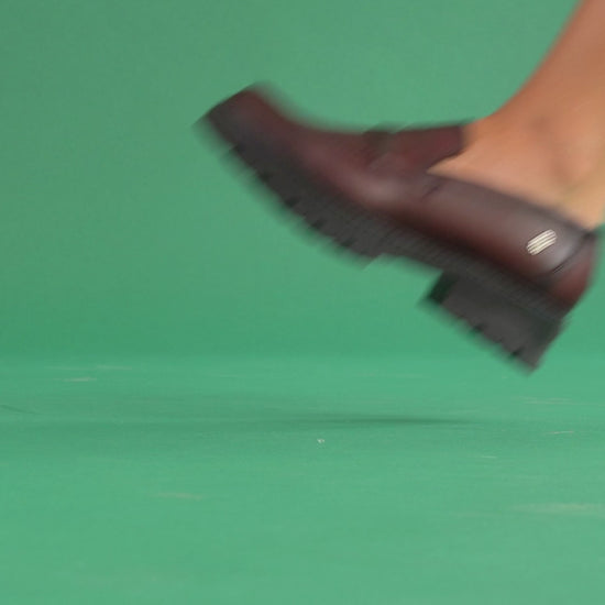 Este nuevo mocasín cuenta con una altura de plataforma de 4 cm de altura y una plataforma de X cm. Está fabricada en piel de napa cepillada.