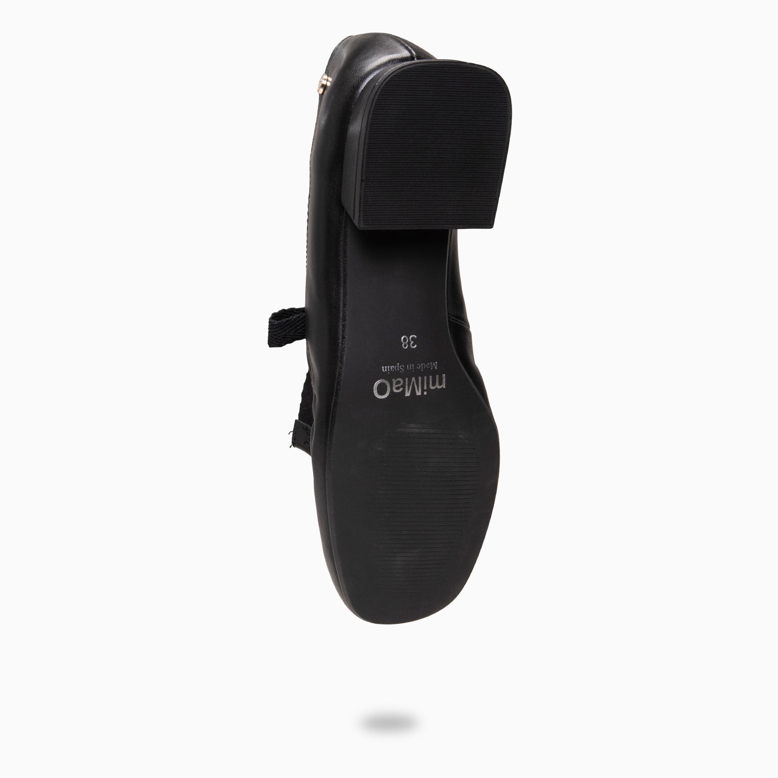 Estas Merceditas cuentan con un tacón de 3 cm de altura, están fabricadas en piel de napa metalizada. Cuenta con un tacón bajo, lo que las hace cómodas y versátiles para todo tipo de ropa.  Cuenta con un lazo en el empeine, de además para darle un toque distinto, poder ajustarlo a la medida que quieras.