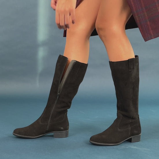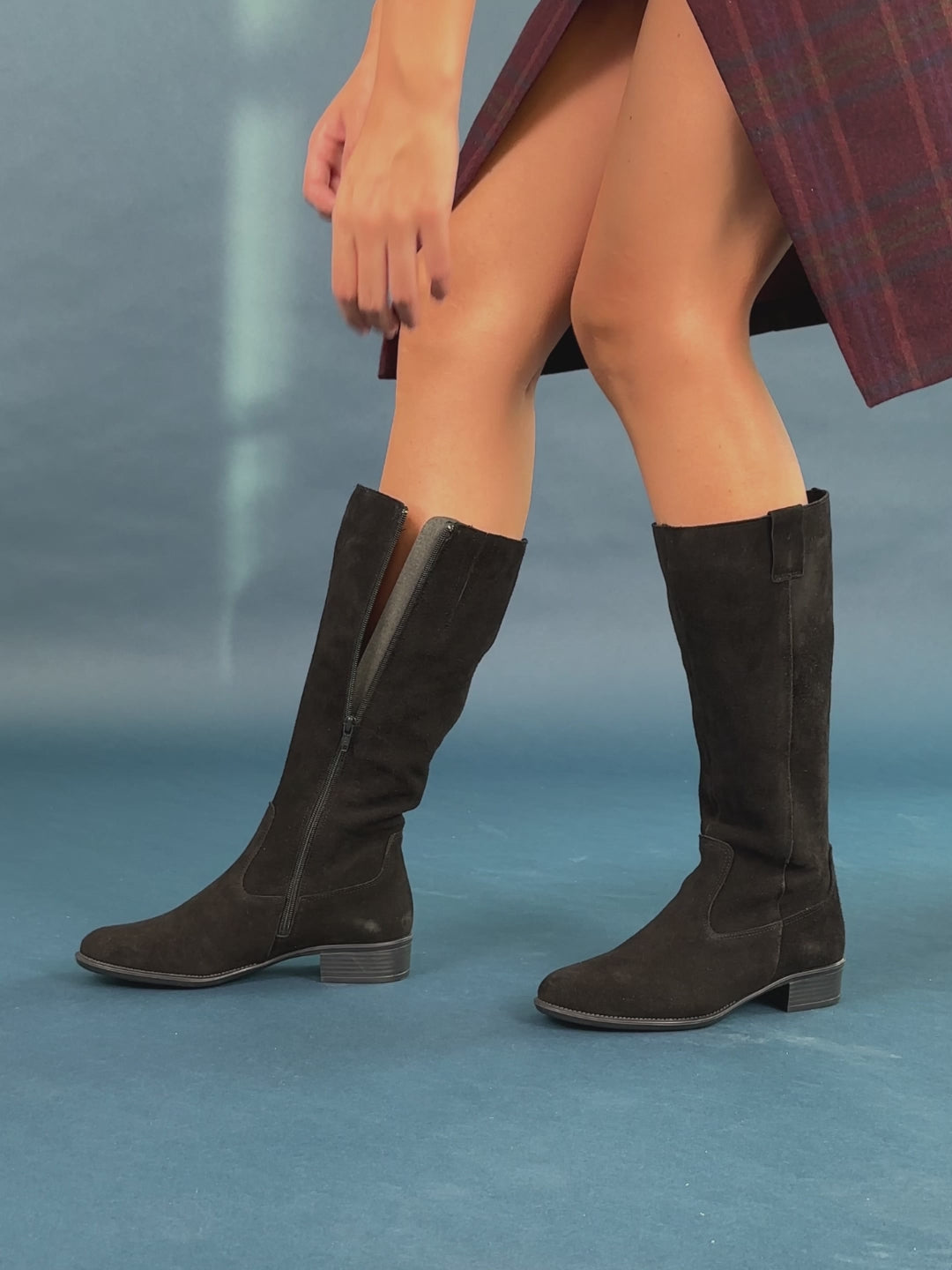 Botas de tacón bajo para mujer fabricadas en piel de serraje, tiene un tacón de 3cm de altura, que te permitirá combinarlas con cualquier outfit de la temporada otoño invierno. Su tratamiento hidrófugo mantendrá tus pies secos en los días húmedos y el forro interior mantiene la pierna caliente.
