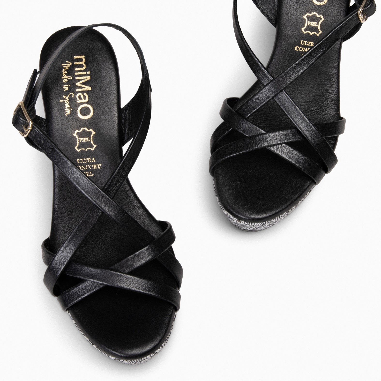 Con tiras finas cruzadas en la pala y en el empeine, estas sandalias aseguran un ajuste perfecto y seguro para tu pie, mientras que la talonada cuidadosamente diseñada ofrece un soporte adicional. La hebilla dorada en la tira permite un ajuste personalizado, mientras que la tacha dorada con el logo de miMaO en el lateral exterior añade un toque de elegancia.