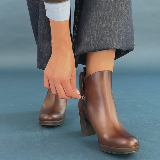 SABRINA – Botin de tacón alto con elástico lateral MARRON