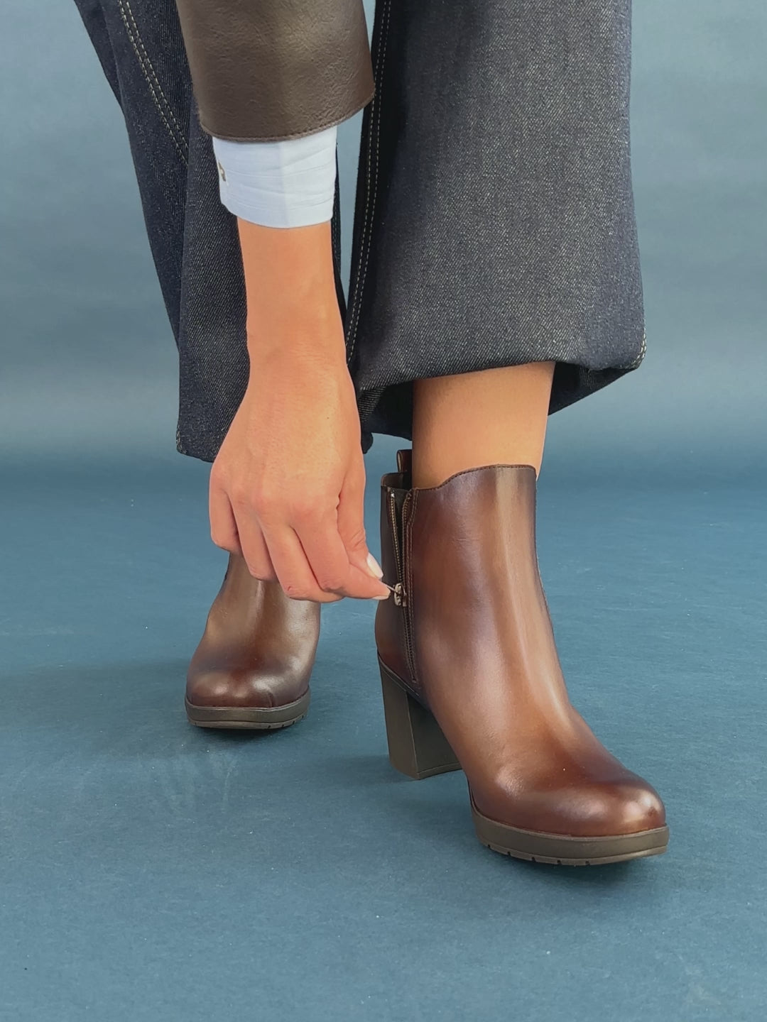 Nuestro nuevo botín tiene una altura de 7cm de tacón, y su plataforma tiene 1.5cm de altura. Está fabricada de piel de napa cepillada, además cuenta con una goma lateral para darle un toque distinto a los demás botines, a parte de dar más comodidad a la hora de ponérselas.