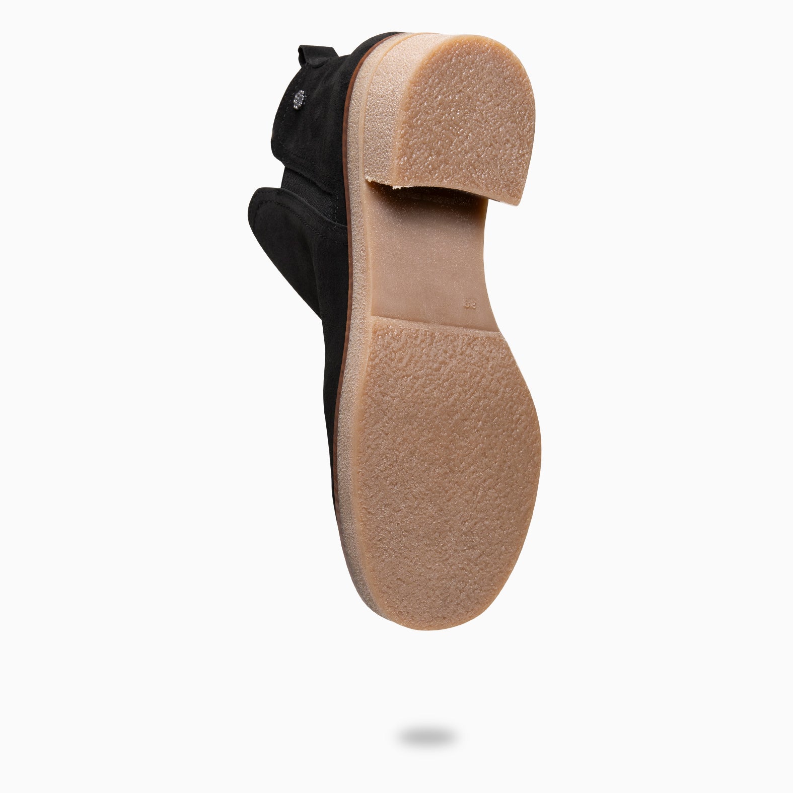 También incorporan un elástico lateral tipo chelsea, una cremallera lateral que facilita el calce y descalce, y una suela exterior antideslizante de crêpe.