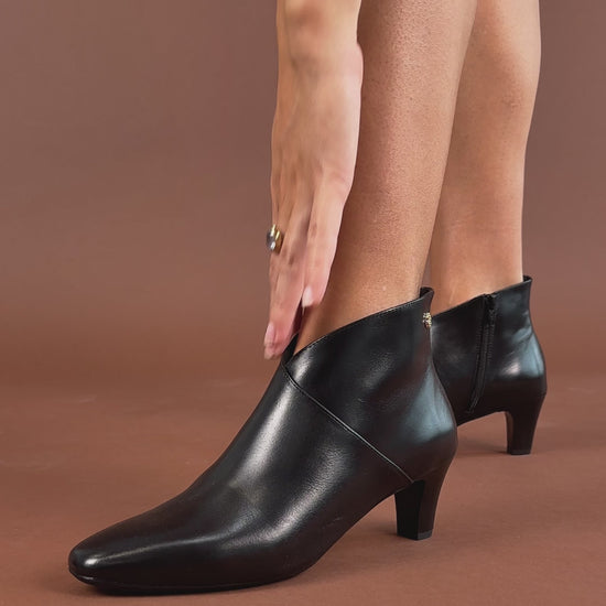 Estos botines de piel de napa tienen un sofisticado escote en V que podrás combinar con outfits, como, por ejemplo, unos pantalones pitillo. Fáciles de poner gracias a la cremallera lateral, pero, sobre todo, serán uno de los botines más cómodos que tendrás en tu zapatero, pues lleva la plantilla de piel Ultra Confort Gel, mantendrá tus pies descansados y podrás caminar con ellos todo el día.
