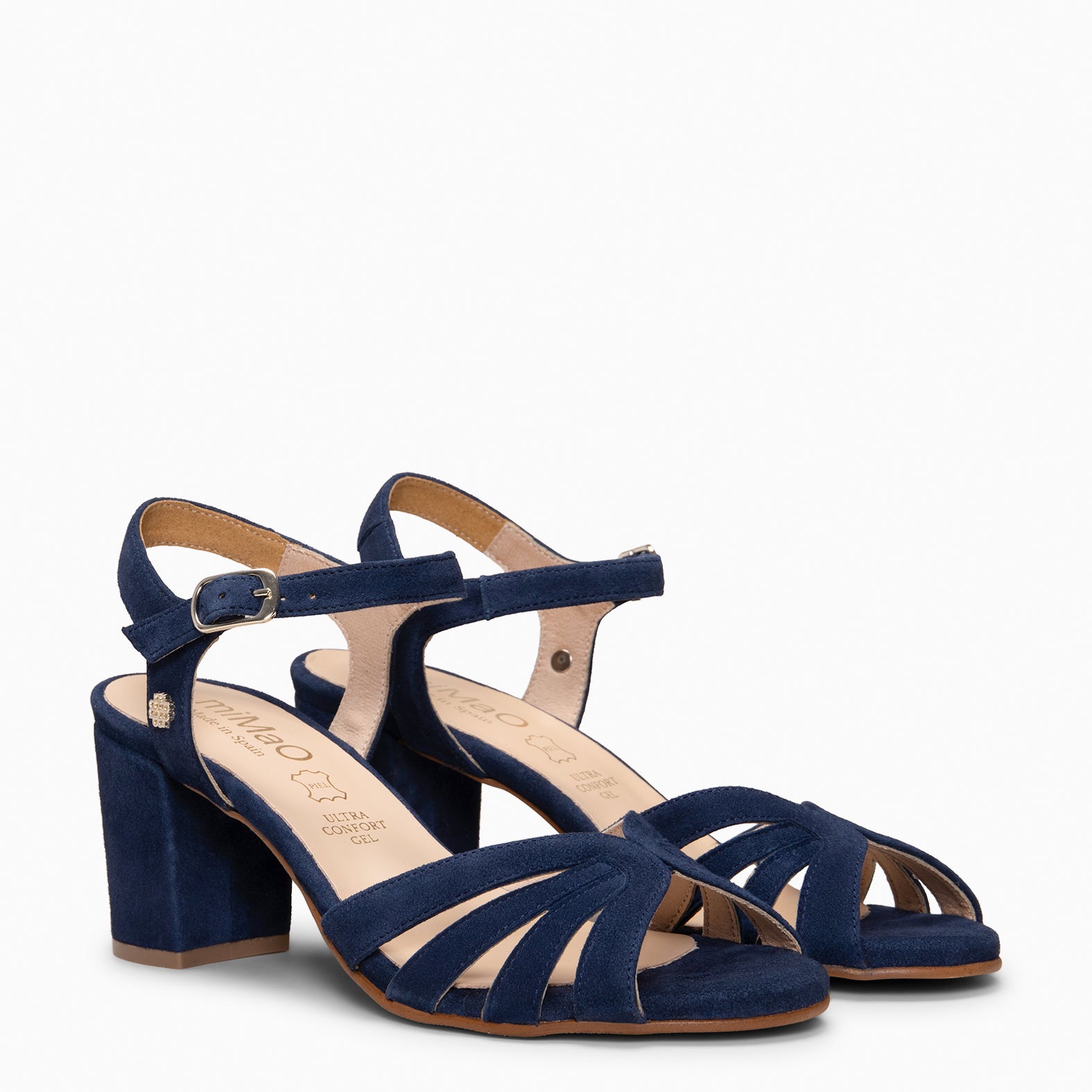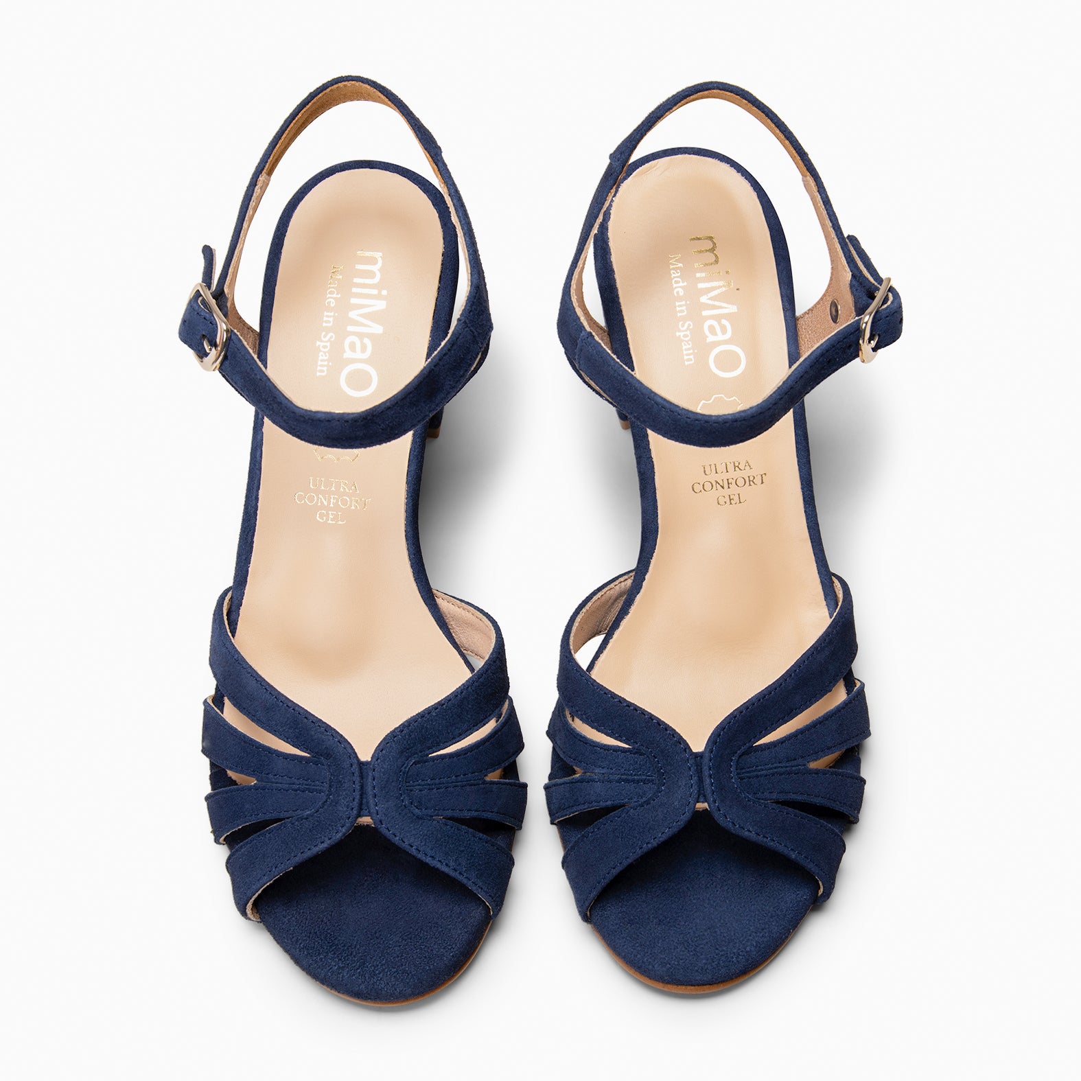 Sandalias elegantes con tacón ancho, perfectas para llevar en las ocasiones especiales. La punta es redonda y las tiras del empeine recogen los dedos, aumentando la comodidad. Además, cubre los juanetes y los protege.