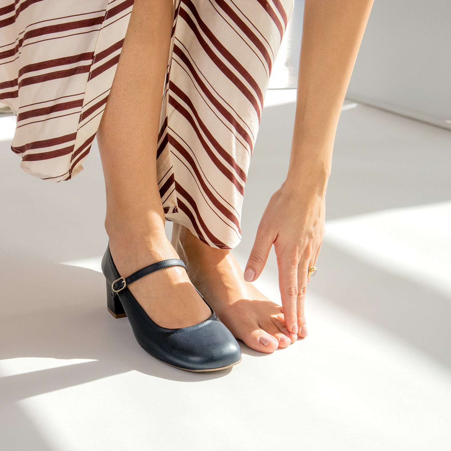 Nuestro mercedita ROSALÍA baresoft es una inspiración de la tecnología Barefoot. Elaborado en piel de napa, cuenta con un tacón de 5 cm, que los hace perfectos para su día a día en oficina u otro tipo de eventos. Además, incorpora una hebilla con elástico que proporciona un ajuste seguro, manteniendo el pie firme y cómodo al caminar. La punta dibuja la forma natural de los dedos permitiendo que los dedos se extiendan de una forma natural.