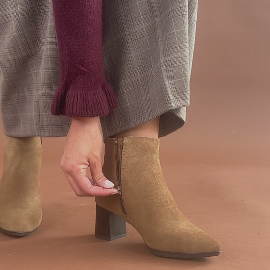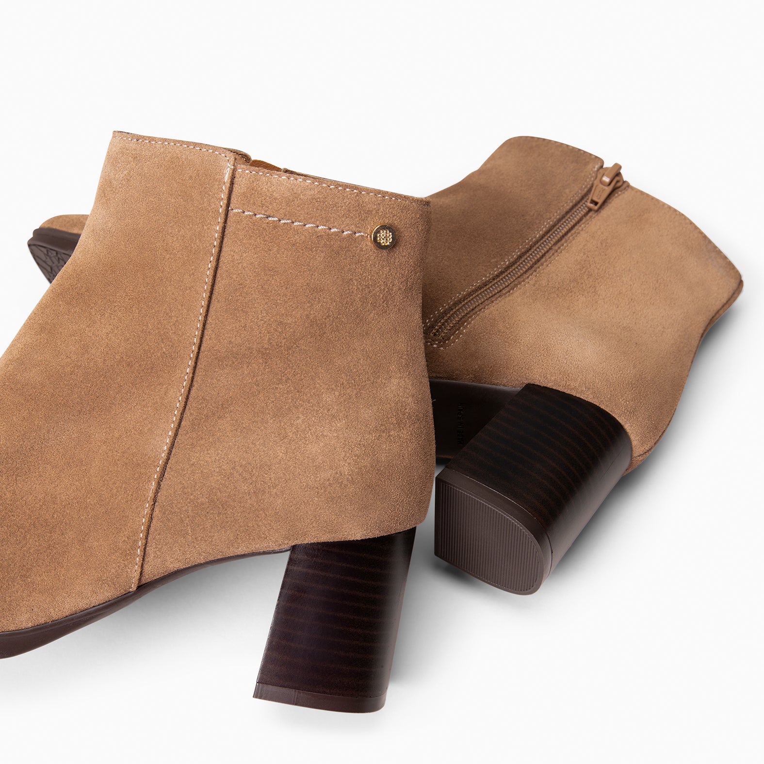 CITY - Botines de tacón ancho y punta fina TAUPE