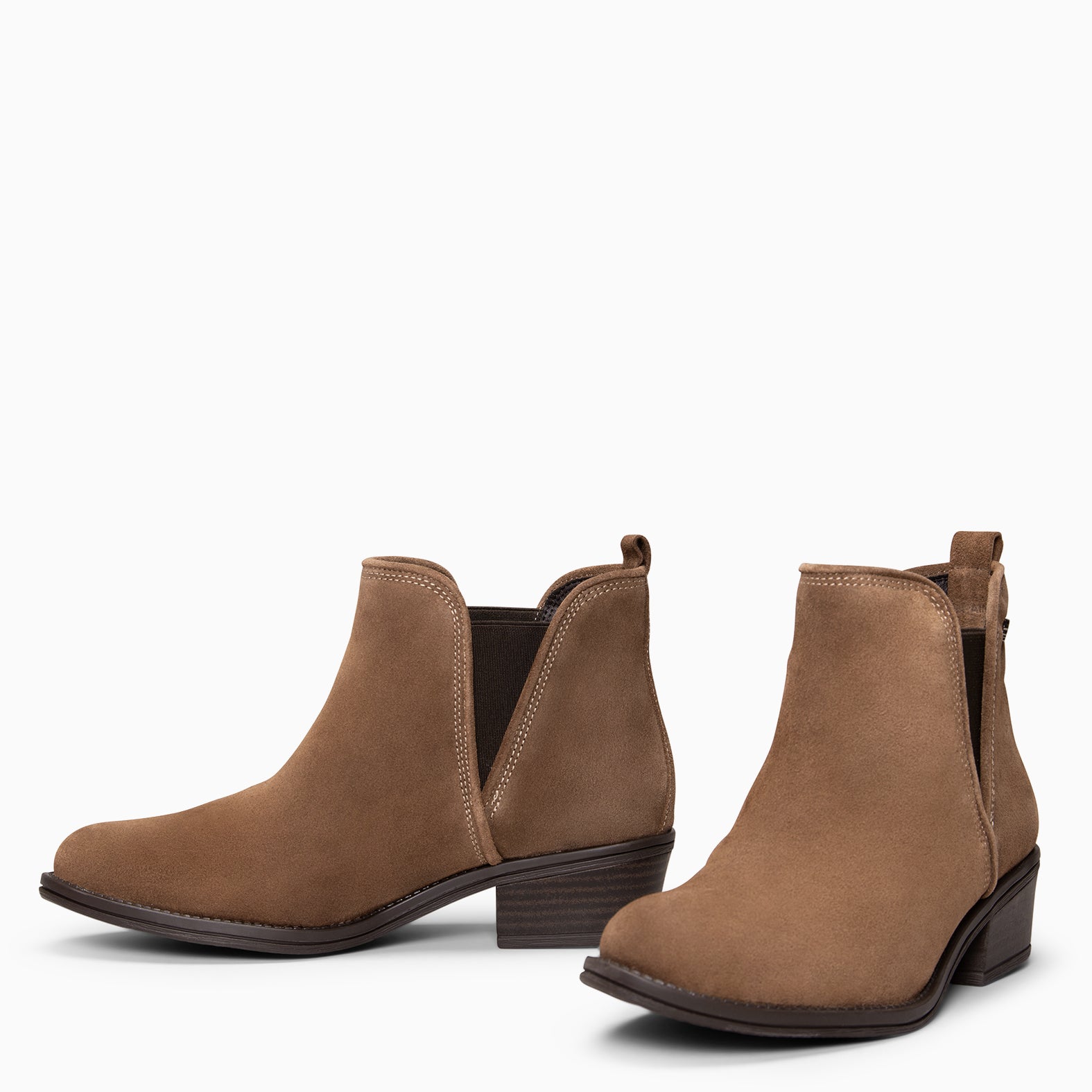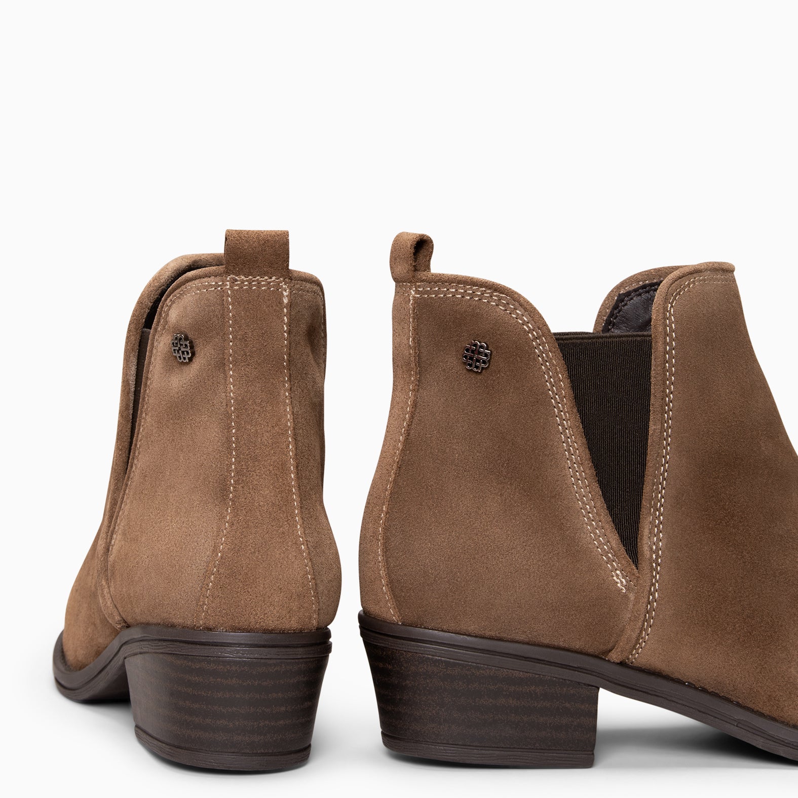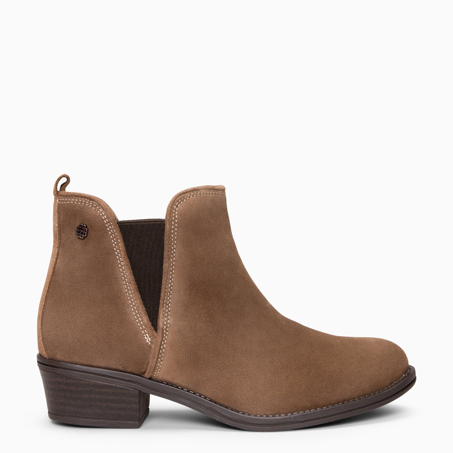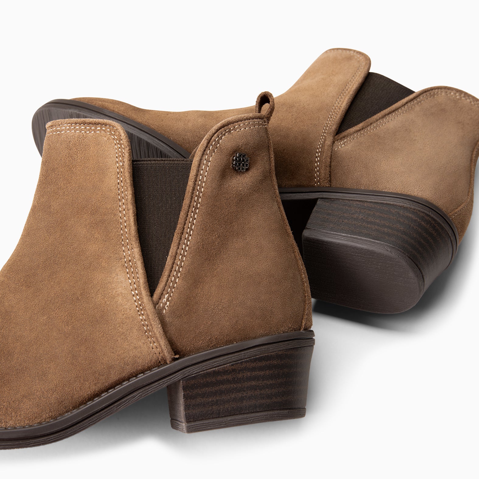 Nuestro nuevo botín bajo tiene un tacón con una altura de 4 cm. Está fabricado con piel de serraje hidrofugado, lo que evita que cale en los pies los días de lluvia.