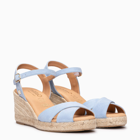 CALPE - Cuña de yute artesanal con tiras cruzadas CELESTE