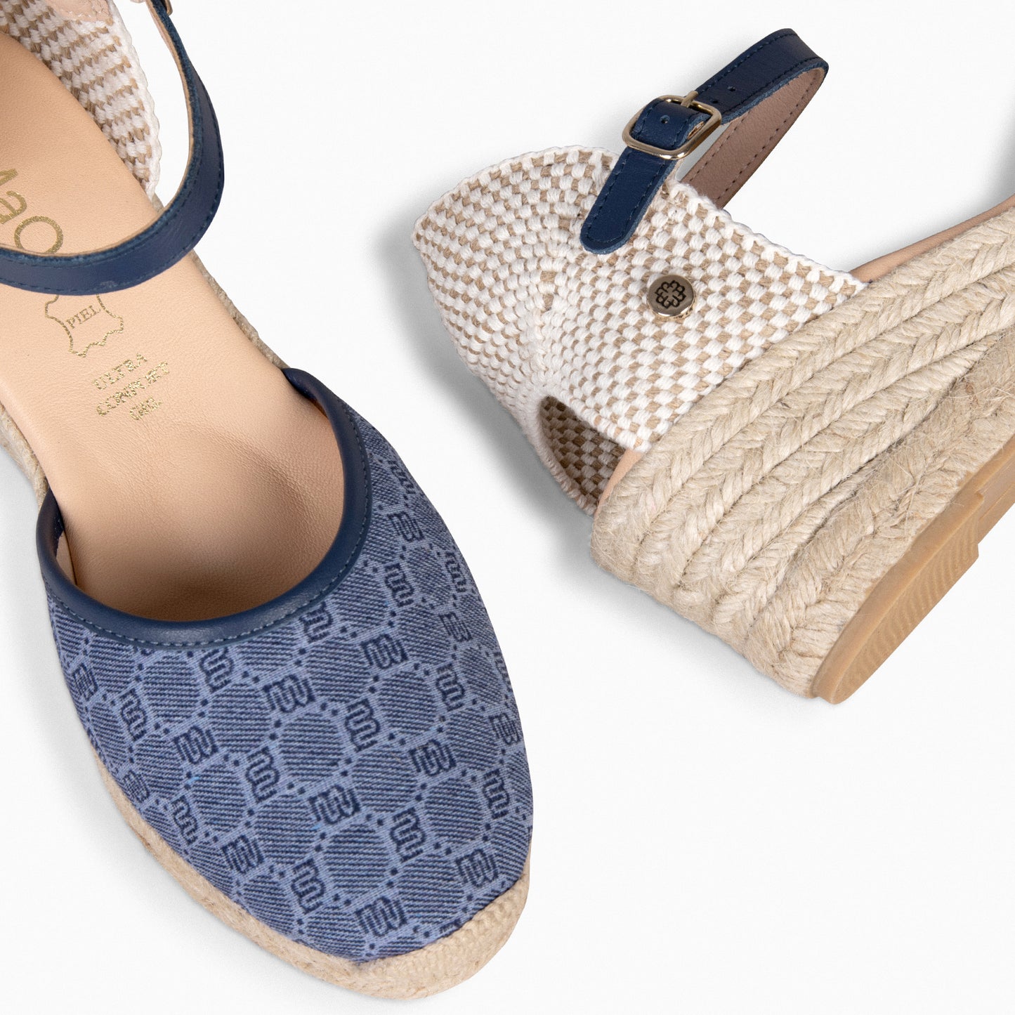 Cunhas de esparto com tecido jacquard com desenhos geométricos