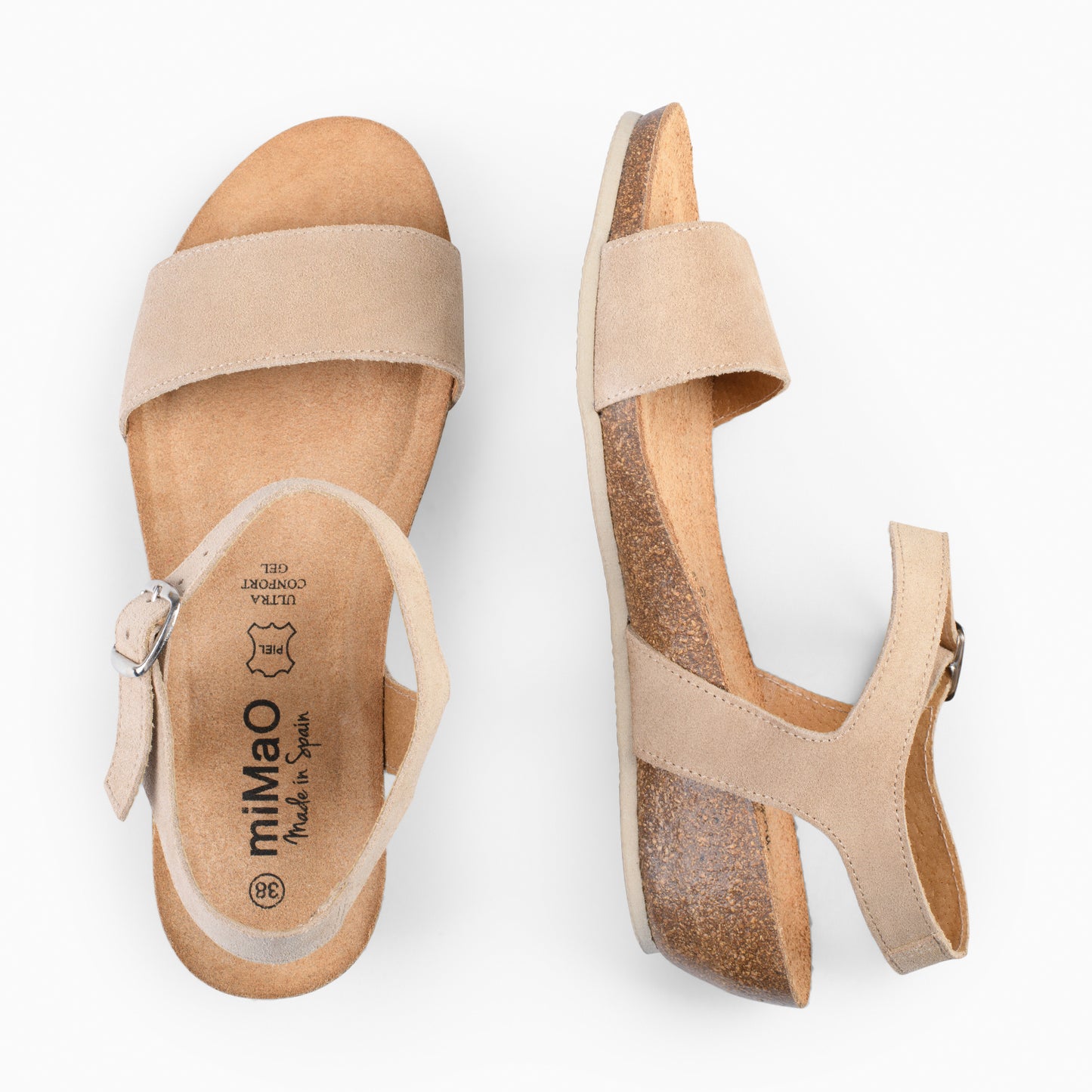 OAK – Sandálias de cunha em camurça BIO CAMEL