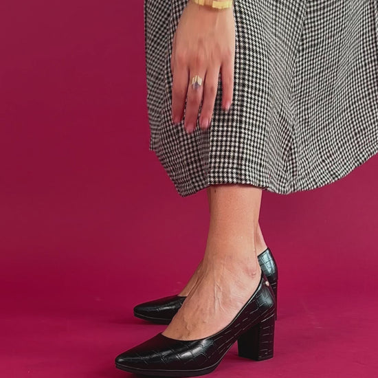 URBAN SAUVAGE - Zapatos de tacón alto con textura napa grabada en coco NEGRO
