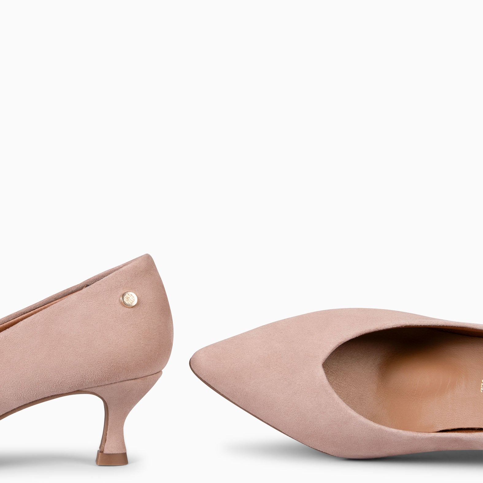 Nuestro nuevo zapato fabricado en piel de ante, tiene una altura de 5 cm. Cuenta con una tacha en le lateral con el logo de miMaO.